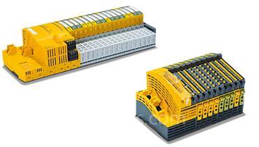 在皮爾磁提供的安全方案中,安全任務(wù)由控制柜中的兩個PSSuniversal PLC中央控制系統(tǒng)與外圍設(shè)備中PSSuniversal分布式I/O系統(tǒng)的18個模塊配合執(zhí)行。