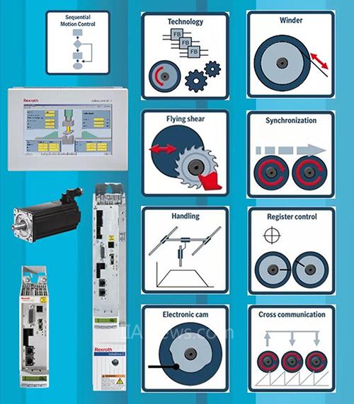 SMC功能模塊可以應(yīng)用在以下的IndraDrive驅(qū)動系列:從最小功率 100W的緊湊型驅(qū)動器IndraDrive Cs,由功率與逆變模塊構(gòu)成的IndraDrive M,一直到最大功率4MW的IndraDrive ML。它集成了一系列廣泛的功能,包括跳躍和運動指令,數(shù)學(xué)計算,預(yù)定義指令,應(yīng)用在供料系統(tǒng),高速旋轉(zhuǎn)加工以及軸耦合。在IEC 61131-3編譯環(huán)境下,力士樂也為使用個人電腦的用戶單獨提供了免費的編輯器。用戶可以使用它來對程序進(jìn)行修改,讀取,調(diào)試,啟動和存檔。這個工具甚至可以對活動程序進(jìn)行調(diào)試。類似輸入助手和在線幫助文檔的貼心功能更加體現(xiàn)了用戶友好的操作。