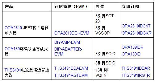 TI新型高壓放大器的封裝如下表所示。目前,TI商店和授權(quán)經(jīng)銷商可批量提供OPA189和THS3491放大器。此外,目前可通過TI商店和授權(quán)經(jīng)銷商獲得OPA2810DGKEVM評估模塊,并且OPA2810放大器于2018年第3季度投入量產(chǎn)。