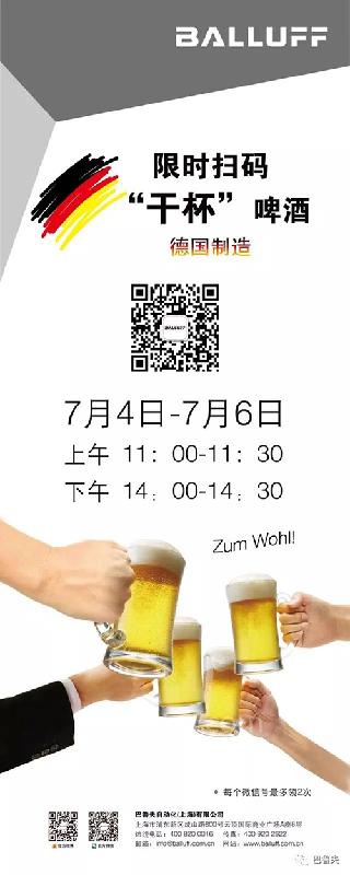 展會(huì)活動(dòng)期間,蒞臨巴魯夫展臺(tái),成功關(guān)注巴魯夫官方微信后,您就能現(xiàn)場(chǎng)免費(fèi)獲得德國啤酒一份。先到先得,不容錯(cuò)過。