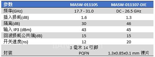 全新MASW-011105 SPDT反射開關(guān)涵蓋17.7到31 GHz的頻率范圍,具有1.6 dB的低插入損耗、30 dB的高隔離度和12 ns的開關(guān)速度,采用無鉛3毫米14引腳QFN表面貼裝塑料封裝。 全新MASW-011107 SPDT非反射開關(guān)以裸片形式提供給客戶,涵蓋DC到26.5 GHz的頻率范圍,在工作頻率為20 GHz時,具有1.3 dB的低插入損耗和46 dB的高隔離度。該兩款器件均經(jīng)全表面鈍化工藝處理,旨在確保高性能和高可靠性。