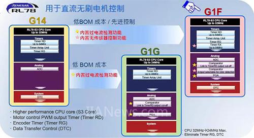 瑞薩電子推出的RL78/G1系列是RL78產(chǎn)品家族中的通用型微控制器,該系列增強(qiáng)了外圍設(shè)備的功能,新增無線和藍(lán)牙外設(shè),并具有真正的低功耗特性。RL78/G1F內(nèi)置了無傳感器BLDC電機(jī)控制單元,進(jìn)一步簡化了BLDC電機(jī)控制,為注重能效的家用電器和電動工具應(yīng)用提供高速和高精度的電機(jī)控制。這些微控制器能夠滿足很多復(fù)雜和特殊應(yīng)用需求。