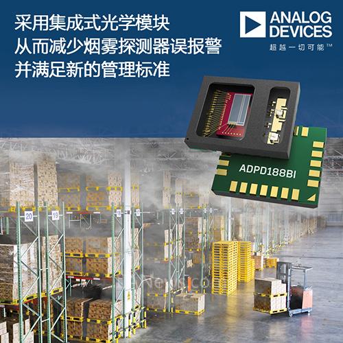 Analog Devices, Inc. (ADI) 近日推出一款集成光學(xué)模塊ADPD188BI,在單個封裝內(nèi)集成兩個LED、光電二極管和模擬前端(AFE)。高性能AFE提供高環(huán)境光抑制能力,并降低功耗以延長電池壽命。兩個LED有助于減少蒸汽和灰塵引起的誤報。誤報是探測器被消費者移除或禁用的主要原因。據(jù)美國消防協(xié)會統(tǒng)計,美國有近四分之一(23%)的人員死亡發(fā)生在煙霧探測器不工作或停用的情況下。