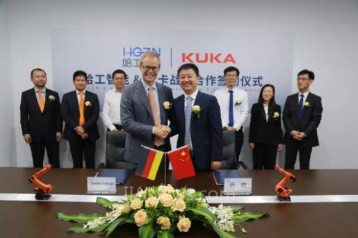 6月28日,全球領先的智能化解決方案提供商 KUKA 與江蘇哈工智能機器人股份有限公司簽訂了戰(zhàn)略合作協(xié)議。今后,KUKA 將與哈工智能全資子公司 51ROBOT(即上海我耀機器人有限公司)就各自領域的競爭優(yōu)勢展開深度合作,以促進中國地區(qū)智能制造、自動化及機器人產業(yè)的發(fā)展,進一步推廣工業(yè)機器人的自動化應用。
