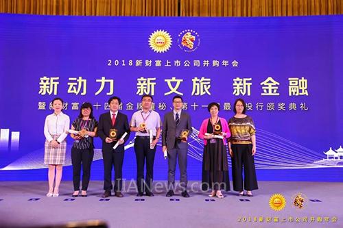 6月29日,2018新財富上市公司并購年會暨新財富第十四屆金牌董秘、第十一屆最佳投行頒獎典禮在揚州迎賓館隆重舉行。