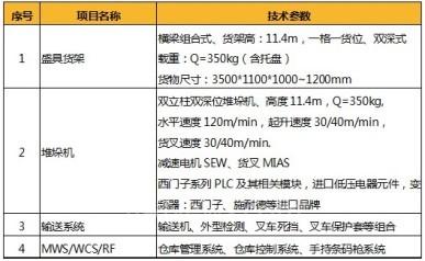 該方案采用組合橫梁式貨架,共有184個(gè)貨位,可承載350kg。入庫(kù)端和出庫(kù)端主要配有輸送機(jī)等相關(guān)設(shè)備,配備雙深位堆垛機(jī)及WMS/WCS/RF信息管理系統(tǒng)。