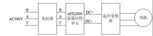 而采用臺(tái)達(dá)解決方案,可以讓能量回饋裝置(包含LCL濾波電抗器和有源前端AFE2000)與變頻器直接連接,當(dāng)?shù)蹉^下降且驅(qū)動(dòng)電機(jī)處于發(fā)電狀態(tài)時(shí),所產(chǎn)生電力則可通過(guò)能量回饋裝置回饋到電網(wǎng)中,達(dá)到節(jié)能的效果。