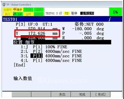 選擇【是】代表當(dāng)前機(jī)器人位置記錄至P[2]