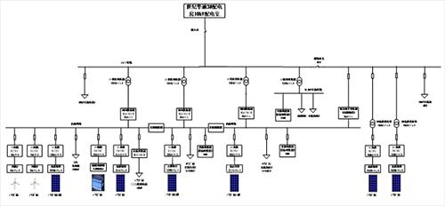 隨著分布式發(fā)電和儲能的大量應(yīng)用和直流負(fù)荷的快速增長,使得直流配電越來越受關(guān)注。直流配電系統(tǒng)將會成為未來配電技術(shù)的一個(gè)重要組成部分。2017年8月26日,國家863課題“高密度分布式能源接入直流混合微電網(wǎng)關(guān)鍵技術(shù)”示范工程在浙江上虞投入運(yùn)行,實(shí)現(xiàn)國內(nèi)首次交直流混合微電網(wǎng)用戶側(cè)運(yùn)行,工程改造或接入分布式光伏總?cè)萘?.4MW,2套5kW風(fēng)力發(fā)電系統(tǒng),1套250kW/800kWh鉛酸電池儲能系統(tǒng),1套交直流微電網(wǎng)功率變換與網(wǎng)架系統(tǒng),系統(tǒng)內(nèi)交流最高負(fù)荷約1.2MW,直流最高負(fù)荷約0.9MW。下圖為該工程拓?fù)鋱D。
