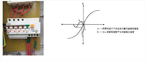 可以看到,如果交流負(fù)載發(fā)生絕緣損壞,產(chǎn)生的剩余電流不僅有交流成分,還有直流成分,如果按照慣性思維依然使用AC型漏電保護(hù)器在交流負(fù)載端進(jìn)行漏電保護(hù)顯然是不行的,不僅無法檢測直流漏電,甚至疊加的直流漏電會導(dǎo)致檢測磁芯預(yù)先磁化,導(dǎo)致脫扣值增大,破壞剩余電流保護(hù)器的原有的保護(hù)功能!