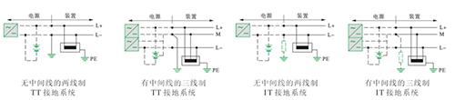 圖3 直流配電系統(tǒng)常用的TT、IT接地形式系統(tǒng)簡圖