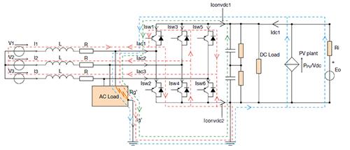 可以看到,該工程采用單層直流母線結(jié)構(gòu),約0.85MWp光伏系統(tǒng)通過DC/DC變流裝置接入微電網(wǎng)直流母線,1.0MWp光伏接入微電網(wǎng)交流母線,約800kWh鉛酸電池組維持直流母線電壓穩(wěn)定,保證微電網(wǎng)離網(wǎng)穩(wěn)定運(yùn)行。交流母線和直流母線之間采用雙向AC/DC換流器連接,直流母線通過DC/DC變流器變換電壓給電動汽車充電樁、LED照明、廠房設(shè)備等直流負(fù)荷進(jìn)行供電。該示范工程提供了高密度分布式能源接入的新模式,為光伏、風(fēng)電等新能源安全穩(wěn)定接入大電網(wǎng)掃清了技術(shù)障礙,在國內(nèi)首次實(shí)現(xiàn)交直流混合微電網(wǎng)用戶側(cè)的商業(yè)化運(yùn)營,能滿足今后電力用戶多樣化性的需求。