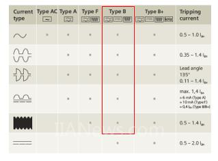 針對剩余電流成分復(fù)雜的剩余電流保護(hù)器,需要使用Type B型剩余電流保護(hù)器,對應(yīng)IEC標(biāo)準(zhǔn)為IEC62423:2009《Type F and type B residual current operated circuit-breakers with and without integral overcurrent protection for household and similar uses》,對應(yīng)國內(nèi)標(biāo)準(zhǔn)為GB22794:2008《家用和類似用途的不帶和帶過電流保護(hù)的B型剩余電流動作斷路器》