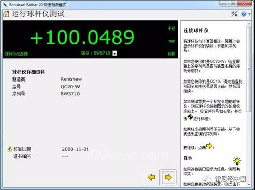 輸入完成后根據(jù)畫面提示,將球桿儀放置在校準(zhǔn)規(guī)上,點(diǎn)擊進(jìn)行校準(zhǔn),等待顯示值與校準(zhǔn)值一致;