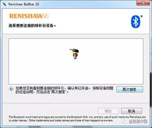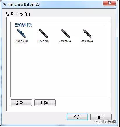 若要第一次搜索新的球桿儀或新增一個(gè)球桿儀,點(diǎn)擊搜索按鈕。這將識別出藍(lán)牙范圍內(nèi)的所有已通電的QC20-W裝置。點(diǎn)擊你要使用的設(shè)備,將帶你到“已知球桿儀”屏幕,點(diǎn)擊確定。如果在你的設(shè)施內(nèi)使用多個(gè)球桿儀,確保你要使用的裝置序列號與軟件內(nèi)的序列號相符。