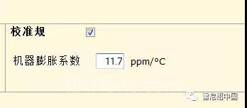 在開始新的校準(zhǔn)測試時(shí),勾選測試設(shè)定屏幕的“校準(zhǔn)規(guī)”方塊。將出現(xiàn)一個(gè)文本框,在提示位置鍵入機(jī)器的膨脹系數(shù),根據(jù)題目要求機(jī)器膨脹系數(shù)為11.7 ppm/°C。請注意,在實(shí)際操作中,如果輸入的膨脹系數(shù)不同,會得到不同的測試結(jié)果;