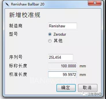 連接球桿儀后繼續(xù)運(yùn)行軟件,將顯示下面的屏幕,根據(jù)校準(zhǔn)規(guī)的標(biāo)牌進(jìn)行輸入;