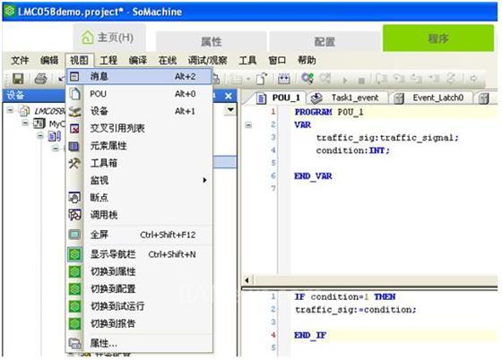 在程序欄目下,打開視圖菜單,選擇消息,如圖8-2-1所示。