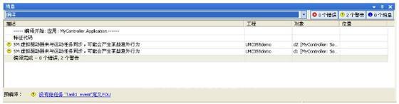 當(dāng)編輯的程序有問題時,在消息欄會給出提示,雙擊這個提示會找到出錯的地方,如圖8-2-3所示。