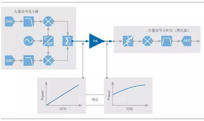 在分析射頻PA的性能特性時(shí),工程師會(huì)采用各種測(cè)量和測(cè)試技術(shù)來(lái)了解設(shè)備的增益、線性度和效率。在實(shí)際操作中,分析設(shè)備特性所需的具體測(cè)量取決于放大器的預(yù)期用途。例如,盡管增益和效率等參數(shù)對(duì)于所有PA來(lái)說(shuō)都很重要,但是用于無(wú)線通信傳輸?shù)脑O(shè)備仍需要針對(duì)特定標(biāo)準(zhǔn)進(jìn)行測(cè)量。誤差向量幅度(EVM)作為PA最重要的度量標(biāo)準(zhǔn)之一,就是用來(lái)衡量調(diào)制信號(hào)的質(zhì)量,而相鄰信道泄漏比(ACLR)是UMTS或LTE 射頻最重要的測(cè)量參數(shù)之一。