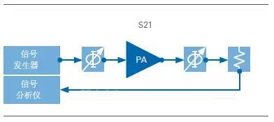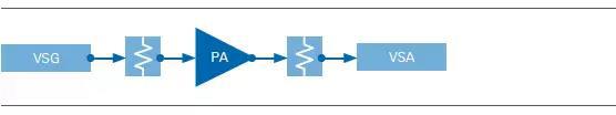 圖6. 使用VNA測(cè)量PA增益時(shí),可使用衰減器來(lái)避免端口2達(dá)到飽和狀態(tài)。