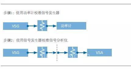 圖5. 系統(tǒng)校準(zhǔn)通過(guò)兩個(gè)步驟完成,即使用功率計(jì)校準(zhǔn)信號(hào)發(fā)生器和信號(hào)分析儀。