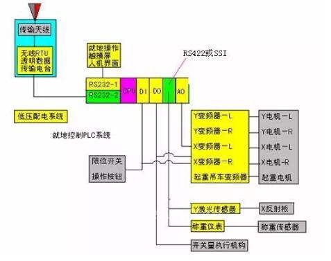 遠(yuǎn)方控制室借由無線數(shù)傳電臺(tái)采集天車位置數(shù)據(jù)遠(yuǎn)程控制系統(tǒng);