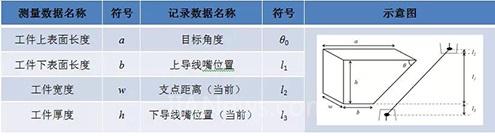 對試加工后的工件進(jìn)行尺寸及角度的測量,需測量和記錄數(shù)據(jù)如下表所示: