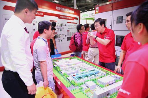德力西電氣工作人員向觀眾用沙盤展示智能配電系統(tǒng)