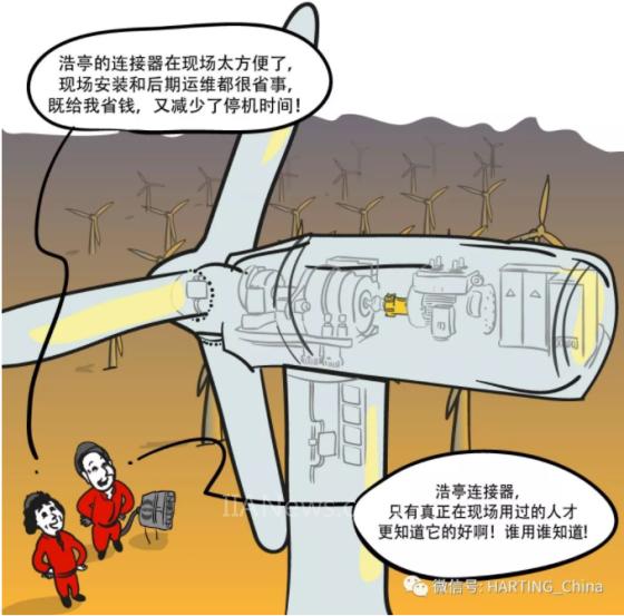 風力發(fā)電機維修人員在使用浩亭的工業(yè)連接器后激動地說:“浩亭連接器,只有真正在現(xiàn)場用過的人才更知道它的好啊!誰用誰知道!”