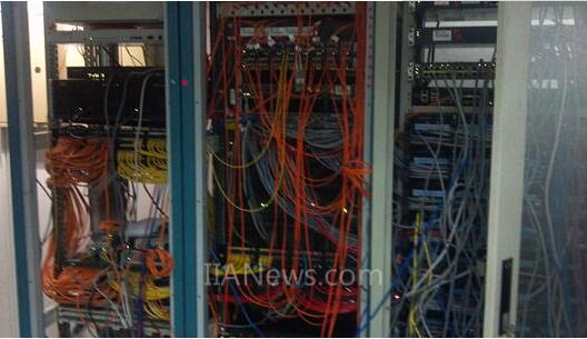 舊大樓內(nèi)的機(jī)房已經(jīng)使用超過(guò)10年,IT設(shè)備增加造成電力容量由原本的冗余架構(gòu)變?yōu)閿U(kuò)容使用,可靠性已經(jīng)明顯下降,日積月累的機(jī)柜內(nèi)線纜,也影響到機(jī)柜內(nèi)散熱及可用性如下圖2-1。加上傳統(tǒng)老舊的空間配置規(guī)劃,未能于機(jī)房?jī)?nèi)有適當(dāng)?shù)臍饬?,?dǎo)致冷熱風(fēng)混合,降低了空調(diào)的效率如圖2-2。同時(shí),舊機(jī)房亦無(wú)環(huán)境及基礎(chǔ)設(shè)置監(jiān)控系統(tǒng),消防系統(tǒng)也非機(jī)房專用,僅僅提供手持滅火器,已經(jīng)不能滿足營(yíng)運(yùn)要求。舊機(jī)房使用狀況說(shuō)明如下: