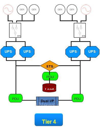 圖2-3 TIA 942建議Tier2及Tier 4架構(gòu)