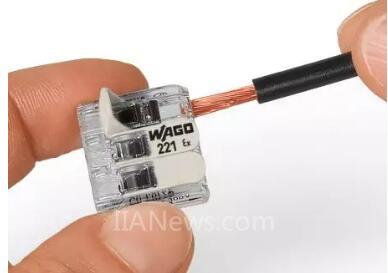 該連接器的手柄可輕松用手扳開,將導線插入,將手柄扳下即可。新型連接器適用于0.14 mm2-4mm2的細多股導線以及0.2mm2-4 mm2(24–12 AWG) 的單股及多股絞合導線。