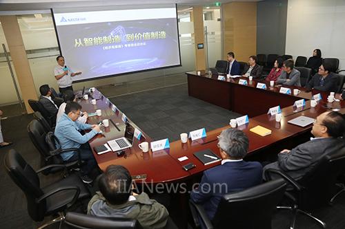 國家科技部發(fā)展戰(zhàn)略研究院副院長王宏廣(左八)、中國信通院產(chǎn)業(yè)與規(guī)劃所所長胡堅波(左十)、機械科學研究總院高級顧問李中廉(左五)等政府智庫與媒體高管,考察吳江智能制造示范產(chǎn)線,稱贊產(chǎn)線效益顯著。