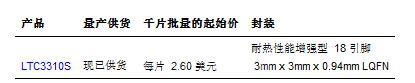 LTC3310S 的 35ns 低最短接通時間可在高頻下實現(xiàn)高降壓比電源。100% 占空比操作提供了低壓差性能。工作頻率可同步至一個外部時鐘。LTC3310S 的總體基準電壓精度在 –40攝氏度 至 125攝氏度的工作結溫范圍內(nèi)為 +/- 1%。其他特點包括指示輸出處于穩(wěn)壓狀態(tài)的電源良好信號、精準使能門限、輸出過壓保護、熱停機、芯片溫度監(jiān)視器、時鐘同步、模式選擇和輸出短路保護。LTC3310S 采用耐熱性能增強型 18 引腳 3mm x 3mm x 0.94mm LQFN 封裝。E 級和 I 級器件規(guī)格在 –40攝氏度 至 125攝氏度 的工作結溫范圍內(nèi)運行。所有版本都有現(xiàn)貨供應。