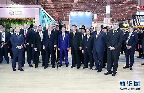 (習(xí)近平同出席首屆中國(guó)國(guó)際進(jìn)口博覽會(huì)的外國(guó)領(lǐng)導(dǎo)人共同巡館)