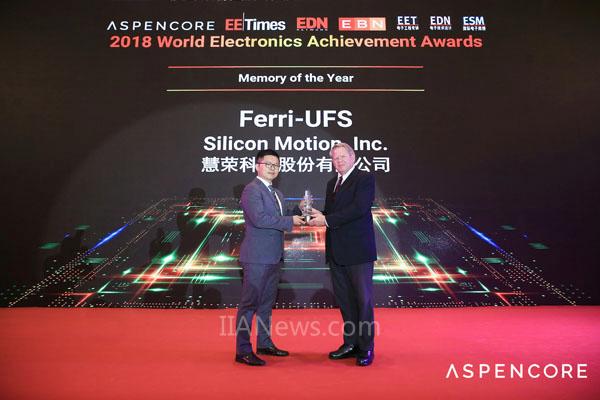 2018年11月9日,中國深圳——在設(shè)計和推廣固態(tài)存儲設(shè)備專用NAND閃存控制器方面處于全球領(lǐng)導(dǎo)地位的慧榮科技(Silicon Motion Technology Corp., NasdaqGS: SIMO)日前榮獲全球雙峰會所頒發(fā)的“2018全球電子成就獎之年度存儲器”,以表彰其多年來在NAND控制器領(lǐng)域所做出的杰出貢獻。頒獎典禮于11月8日在深圳舉行。