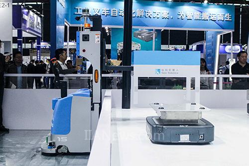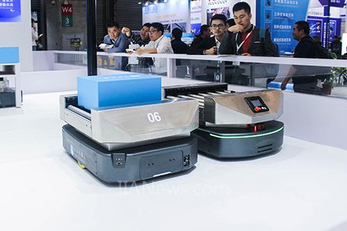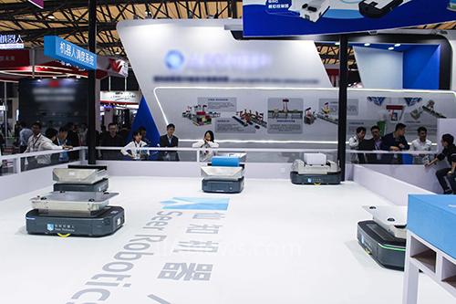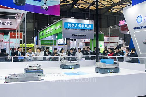 展位中央由AMB系列無(wú)人搬運(yùn)底盤、基于AMB的輥筒式產(chǎn)線對(duì)接機(jī)器人、基于AMB的頂升式搬運(yùn)機(jī)器人、基于SRC的自動(dòng)叉車解決方案、多機(jī)器人調(diào)度系統(tǒng)RoboRoute等組合而成的應(yīng)用于智能工廠的智能物流運(yùn)輸解決方案引人注目,不斷有專業(yè)客戶前來咨詢,駐足觀察。