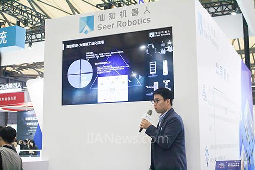 仙知機(jī)器人總經(jīng)理趙越向國(guó)際工業(yè)自動(dòng)化網(wǎng)記者分享創(chuàng)新成果
