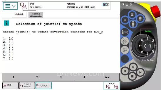 2)YuMi每個關節(jié)內置霍爾傳感器,即機器人在校準位置時,霍爾傳感器信號為0,其他位置為1,所以可以運行程序自動找校準位置(前提是機器人已經在校準刻度附近)