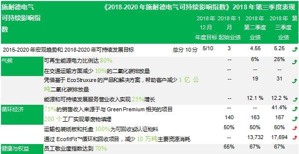 ? ● 《2018-2020年施耐德電氣可持續(xù)影響指數(shù)》報(bào)告顯示第三季度得分達(dá)到5.25分,超出5分的年終目標(biāo)