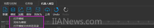 如下圖所示,為機器人的【模板】操作選項,包括:【打開模板】、【另存為模板】、【打開模板文件所在目錄】。