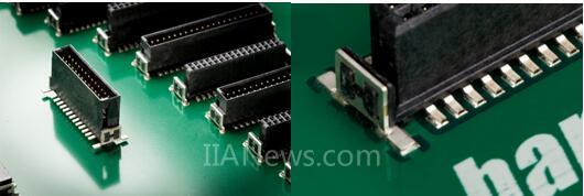 文字說(shuō)明: 左圖為堆疊高度4.85毫米多種引腳數(shù)量的新型公連接器;右圖為滿(mǎn)足自動(dòng)化處理最高品質(zhì)要求的har-flex? 信號(hào)觸點(diǎn)。