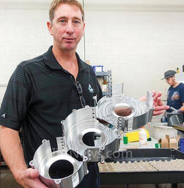 總經(jīng)理Kevin Beach展示了一個(gè)被工程師昵稱為“三球”(因其形狀得名)的零件,它重約4磅,是從80磅重的鋁坯料塊直接切削而成的。一臺(tái)50錐形主軸機(jī)床高速運(yùn)行(通常主軸負(fù)載達(dá)到110%),可以將零件銑削加工周期從八個(gè)多小時(shí)縮減至不到三個(gè)小時(shí)。