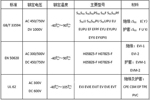 表 1 全球充電樁電纜的主要標(biāo)準(zhǔn)