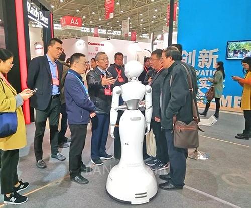 在博眾展位,很多觀眾都對(duì)小博和NEXT產(chǎn)生了濃厚的興趣,紛紛駐足交流互動(dòng)。江蘇省工信部副廳長(zhǎng)周毅彪一行人也來(lái)到博眾展位參觀走訪,考察智能機(jī)器人發(fā)展現(xiàn)狀。