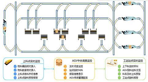 地面物料周轉配送使用AGV小車,由中央調度監(jiān)控室實施調度、系統(tǒng)管理,對上料點工作站實時監(jiān)控。