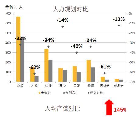 從客戶(hù)下單到產(chǎn)品生產(chǎn)、產(chǎn)品交付全過(guò)程可監(jiān)控,生產(chǎn)過(guò)程透明化、生產(chǎn)管理數(shù)據(jù)化,可預(yù)測(cè)可管控。 人均產(chǎn)值提升:145% 單位面積產(chǎn)值提升32% 縮減總?cè)肆Τ杀?3%。