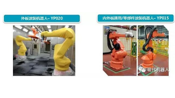 上圖就是現(xiàn)代機器人噴涂機器人的杰出代表——YP015。它在汽車工廠內(nèi)為了車身外觀的防銹,美觀,光澤進行涂料噴灑,適用于中上度涂裝工藝領(lǐng)域的機型。