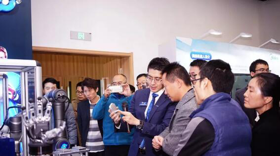 演講結(jié)束后,來賓參觀了佛山機(jī)器人學(xué)院展廳中的智能制造示范生產(chǎn)線和雄克以及優(yōu)傲展臺,實(shí)際感受了人機(jī)協(xié)作的操作簡便性與安全性。雄克雙工位手機(jī)殼柔性加工方案引起來賓極大興趣,它是由一臺協(xié)作機(jī)器人搭配雄克Co-act EGP協(xié)作機(jī)械手,通過零點(diǎn)快換系統(tǒng)夾持,可快速自動切換不同型號的手機(jī)外殼進(jìn)行加工。